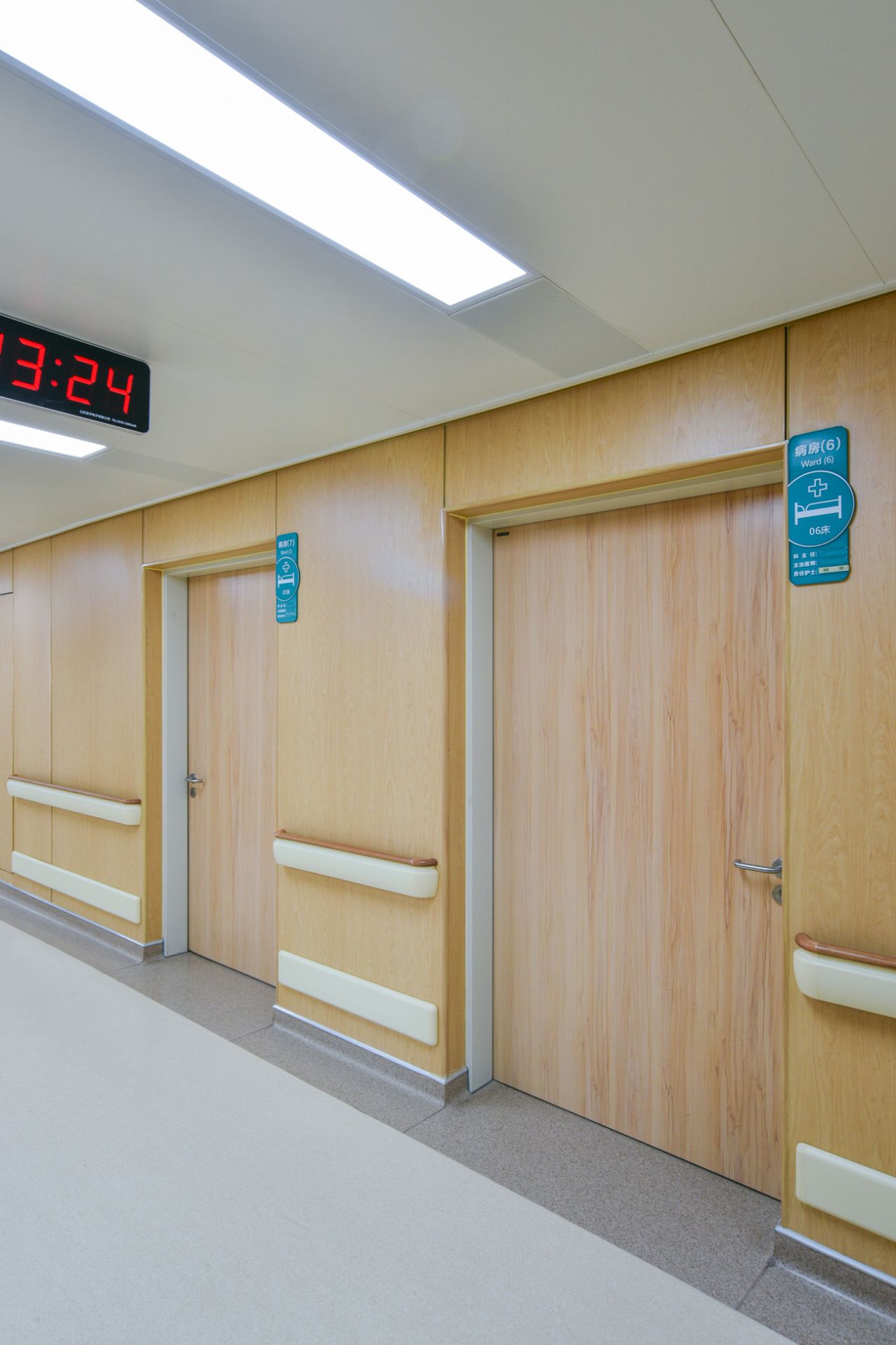 福州明辉数字设计有限公司为山东省立妇产医院新建大楼项目中提供医疗环境整体解决方案,其中包含金属木纹病房门、金属诊疗室门、金属木纹双开门等。打造高品质人性化的医疗空间。