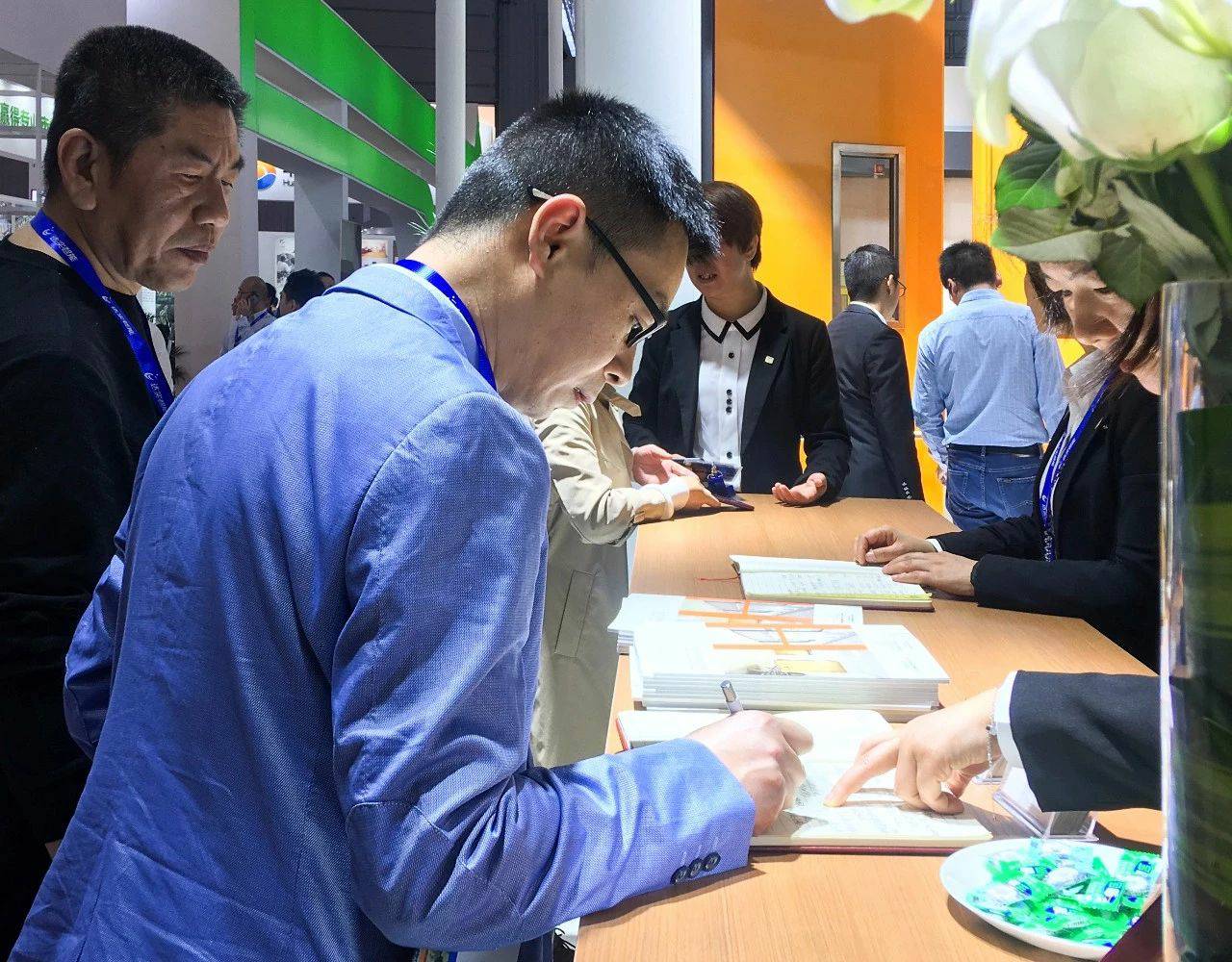 (工作人员与观展者详细讲解产品,交流行业信息)